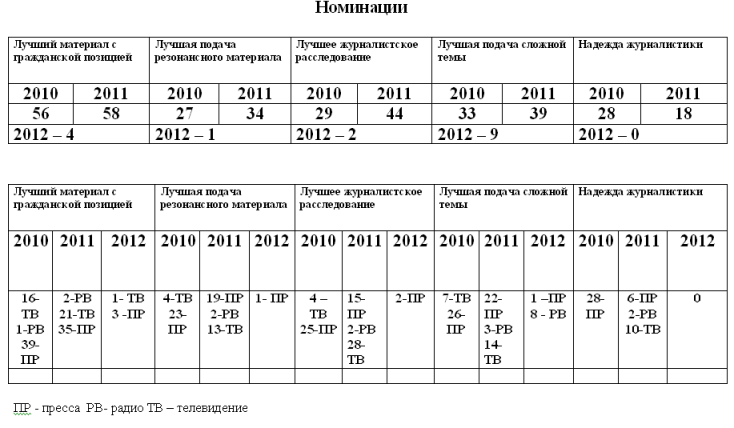 И все же, чтобы конкурс играл важную роль в развитии профессиональной журналистики, он должен и конференцию проводить, и на церемонии награждения торжественно вручать награды победителям. Поэтому Оргкомитет постоянно ищет источники финансирования для сопряженных с этим затрат.