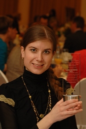 Статуэтка «Честь профессии» в руках у «Надежды журналистики – 2011» Софии Богуцкой