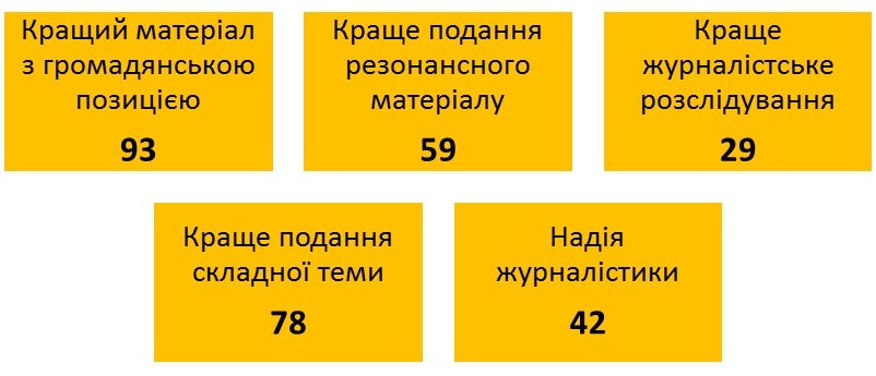 У спеціальну номінацію «Кращий матеріал про захист прав людини в Україні», створену за підтримки Програми розвитку ООН в Україні та посольства Великої Британії в Україні подано 49 конкурсних робіт. Серед усіх поданих на конкурс робіт найкращий «Матеріал, що надихає на створення бізнесу» обере компанія Amway – партнер конкурсу «Честь Професії» вже четвертий рік поспіль.