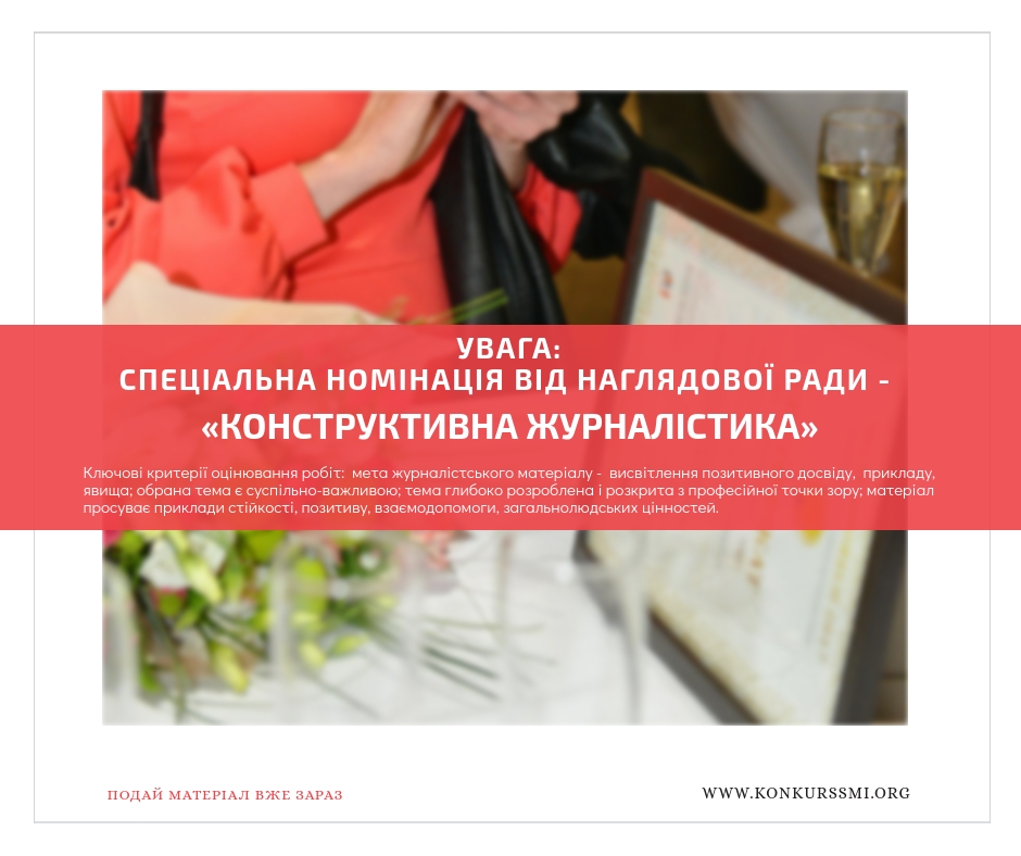 УВАГА: Спеціальна номінація від Наглядової Ради - «Конструктивна журналістика»